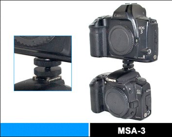 This new adapter from GSI fits on the hot shoe of most cameras. It terminates in a 1/4x20 threadedspud and is used as a Monitor Bracket or anything else that has a 1/4-20 receptacle.